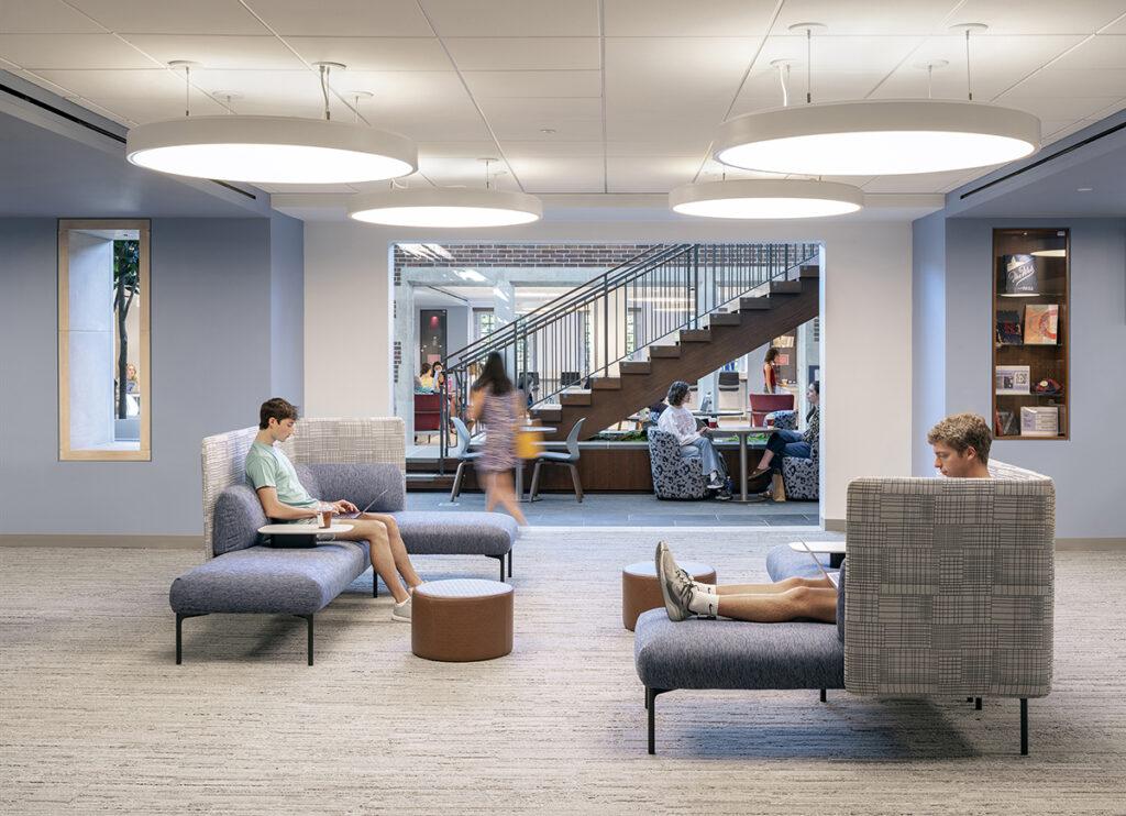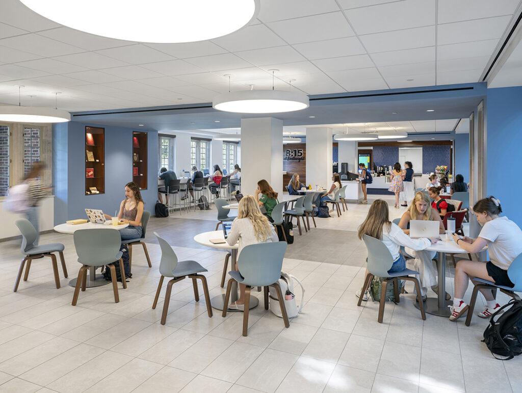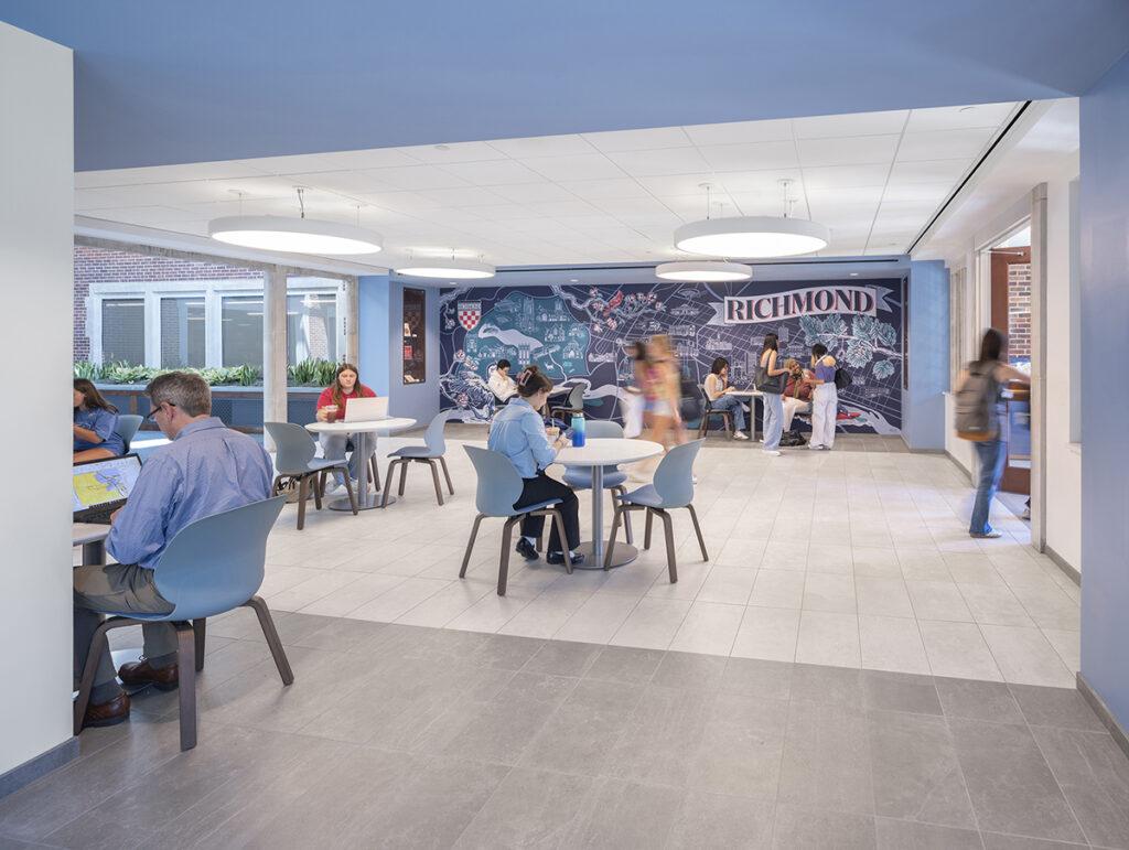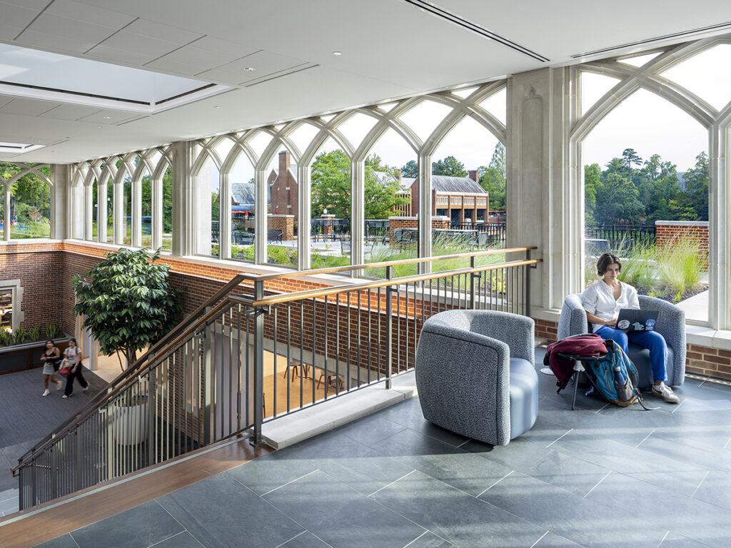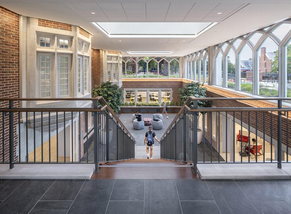 This expansive addition and renovation to the University’s iconic centerpiece includes a new cafe space, multiple exterior entries and a new courtyard enclosure as well as complete re-envisioning of the beloved Lora Robbins Gallery. The enclosed courtyard will be a sun filled space to link this level to student study spaces above while creating a pair of lively outdoor terraces facing Westhampton Lake, the University’s central landscape feature which has previously been hidden from the structure. Photography by Joe Romeo